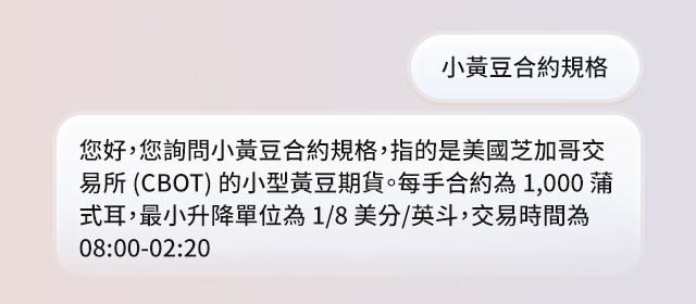 問商品名稱,馬上查得到即時保證金/合約規格/到期日。